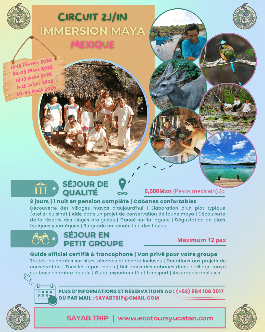 Tous nos prix sont en Pesos Mexicains et par personne.